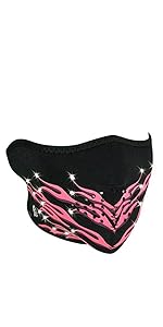 Our neoprene face masks feature coverage of the face and ears. Made out of elastic nylon-neoprene, these masks provide thermal insulation, including water and abrasion resistant protection, these masks provide the perfect combination of style and protection whether you're doing a cross-country motorcycle tour or ripping the ski slopes.